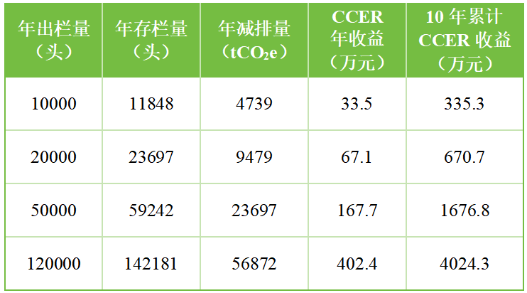 以年出栏量2万头的规模化猪场为例,估算年减排量有望达到近9500t CO2 e,年收益可达67万元。