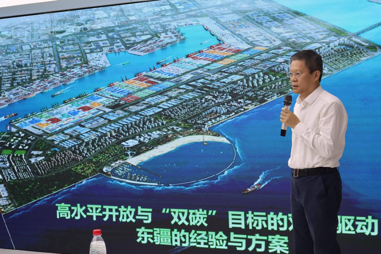 在专题演讲环节,天津东疆综合保税区商务促进局局长张超以《高水平开放与“双碳”目标的双轮驱动:东疆的经验与方案》为题,介绍了东疆在绿色行业标准、碳资产管理、绿色交通、专业化平台等多方向的创新实践。