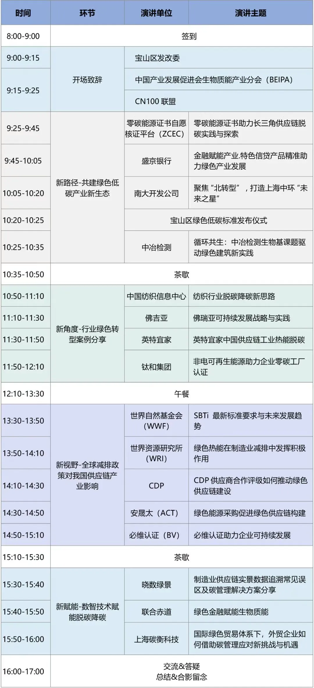 为深入贯彻落实《中共中央国务院关于加快经济社会发展全面绿色转型的意见》《国家发展改革委等部门关于大力实施可再生能源替代行动的指导意见》,着力推动经济高质量发展和绿色发展,促进生物质能在实现“双碳”目标过程中发挥更大作用,进一步增强工商业企业可持续发展能力建设,进而提升市场竞争力,借助“零碳能源证书(上海)试点中心”推动长三角地区企业绿色供应链建设,在上海市宝山区发改委的指导下,由中国产业发展促进会生物质能产业分会和CN100联合主办,盛京银行、南大智慧城协办,北京松杉低碳技术研究院承办的“绿色能源协同供应链脱碳发展座谈会”将于2025年10月16日9:00-17:30在上海市南大智慧城举办。现将有关事项通知如下: